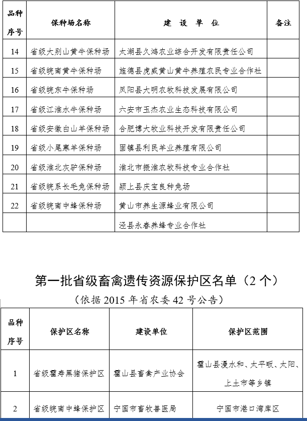 2.第一批省级畜禽遗传资源保种场、保护区名单