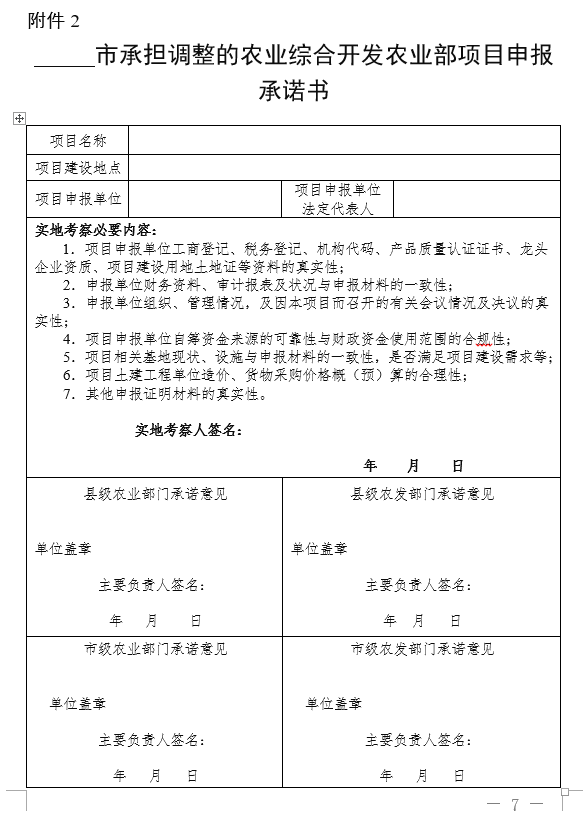 2. 市承担调整的农业综合开发农业部项目申报承诺书