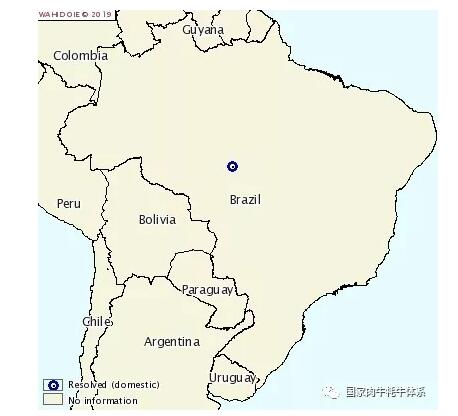 2019年5月31日,世界动物卫生组织(OIE)接到巴西农业部的报告,巴西确诊一起非典型性疯牛病(牛海绵状脑病)。巴西农业部5月4日发生一例疑似病例,5月31日确诊,随后立即向OIE报告了疫情。